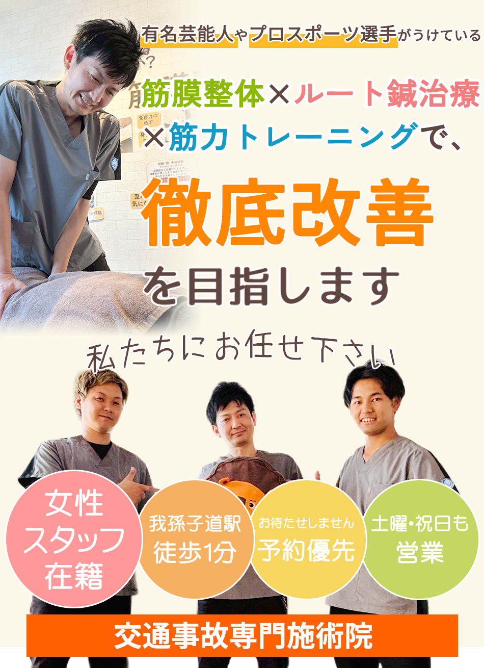 有名芸能人やプロスポーツ選手と同じ施術が受けられる「ルート治療×筋膜整体」という高度な技術を駆使し、慢性的な痛みや身体の不調を根本から改善する事を目指しています。この治療法は有名芸能人やプロスポーツ選手も取り入れられていることで注目を浴びており、パフォーマンス向上や体調管理のために利用されています。