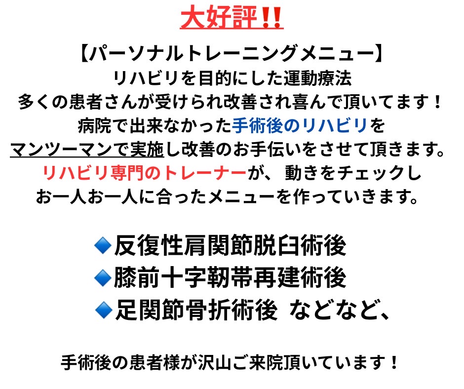 痛みを早く取り除くトップアスリートのトレーナーの改善技術を受ける事が出来る事が当院の魅力の1つです。